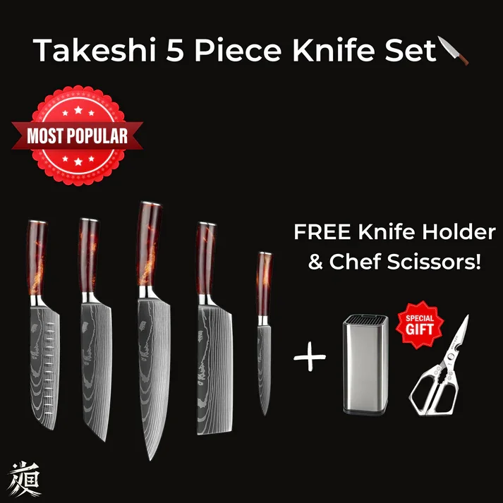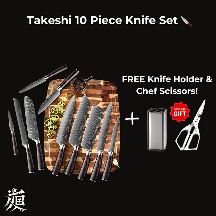 For a budget-friendly knife set, the Takeshi Knife Set delivers premium quality. I’ve used these knives every day, and they’re still razor-sharp. The free knife holder is a fantastic bonus and looks great on my countertop. If you love cooking at home, this set is a must-have!